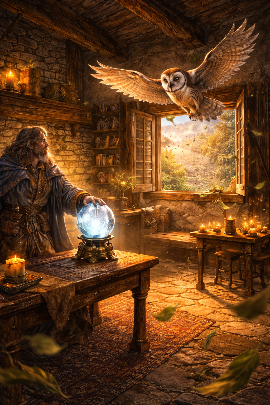 ‘O glazen bol,’ fluisterde hij, ‘laat mijn dierbaarste hier verschijnen. Laat haar vleugels door de wind snijden, en haar instinct haar naar mij leiden.’